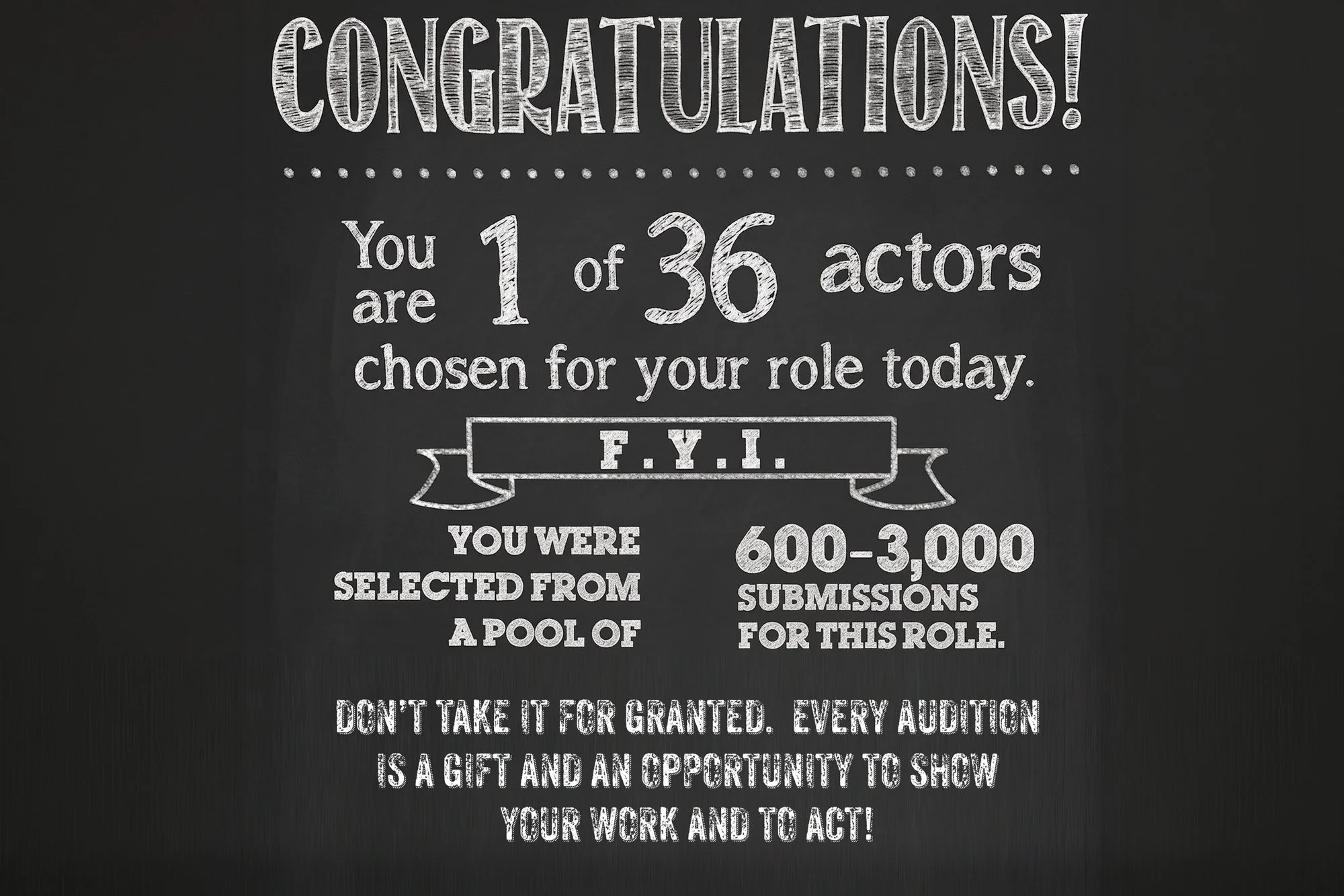 Every audition is an opportunity! As I mentioned above, you never know when a booking will result in even more work — a recurring character or expanding role are always possible. Work begets work — it allows you to be seen and network! Not only that, but it’s a chance to ACT and practice you skills and explore new territory as an artist!
